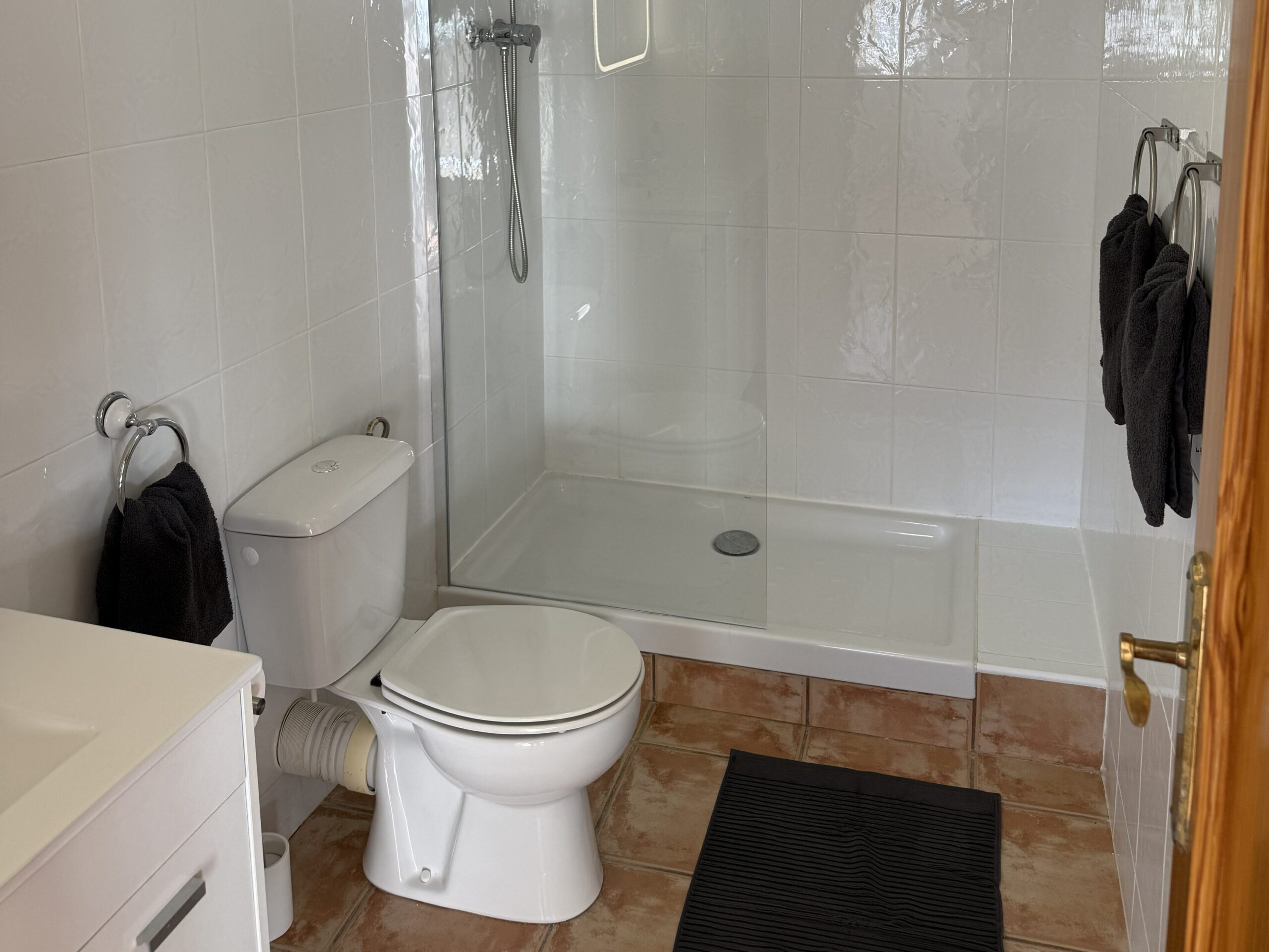 De casita heeft een eigen badkamer met douche, wastafel en toilet. De badkamer beschikt over een föhn.
